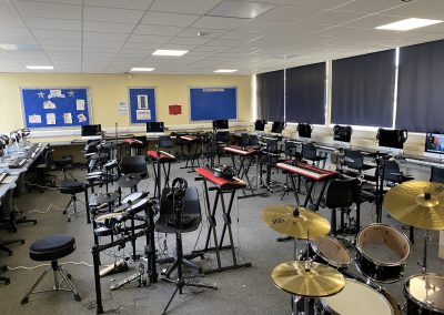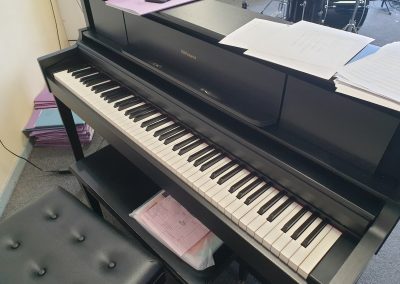During the Easter holidays we were delighted to spend a day at the Phoenix Academy in West London. Last year, the school received £20k of funding from Restore the Music UK. Due to the lockdown, the setting up of the instruments had been delayed. The school purchased a range of equipment including new pianos, an acoustic drumkit, and six ‘silent rehearsal’ kits comprising of the Roland HS-5, TD-1DMK V-Drums, Go Keys, electric and bass guitars, and vocal microphones. Additional items included stools, stands, a PreSonus AR12C mixer and two Air 12 PA speakers (so that all the work of individual bands could be shared in the classroom) and all the associated cabling.