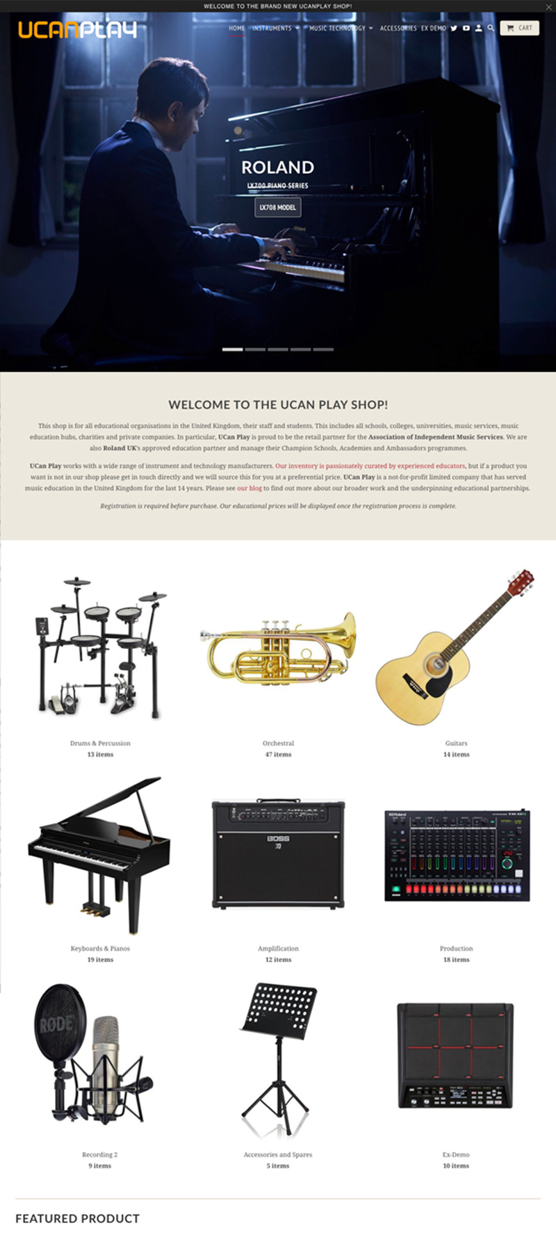 The UCan Play shop hosts an inventory passionately curated by experienced educators. UCan Play is extremely proud to be the retail partner for the Association of Independent Music Services. The shop features a wide ranging collection of products, from acoustic Orchestral instruments to leading edge Music Technologies, that will expand with additional items being added in the future. Preferential education pricing is available, and the shop provides a point of sale for all our education partners in the UK including: